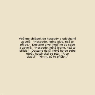 Dostane další. Když ho do sebe otočí, hostinskej se ptá: