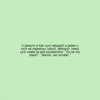 V jeskyni si tak vysí netopýři a jeden z nich se najednou vztyčí. Netopýr, který vysí vedle se ptá sousedního: ˝Co se mu stalo?˝ ˝Nevím, asi omdlel.˝