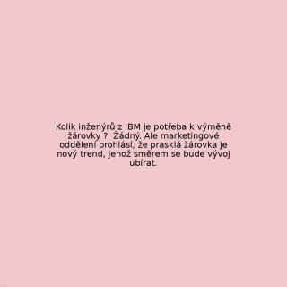 Kolik inženýrů z IBM je potřeba k výměně žárovky ? Žádný. Ale marketingové oddělení prohlásí, že prasklá žárovka je nový trend, jehož směrem se bude vývoj ubírat.