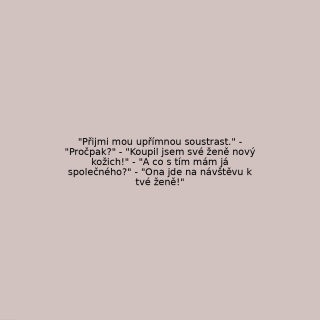 "Přijmi mou upřímnou soustrast." - "Pročpak?" - "Koupil jsem své ženě nový kožich!" - "A co s tím mám já společného?" - "Ona jde na návštěvu k tvé ženě!"