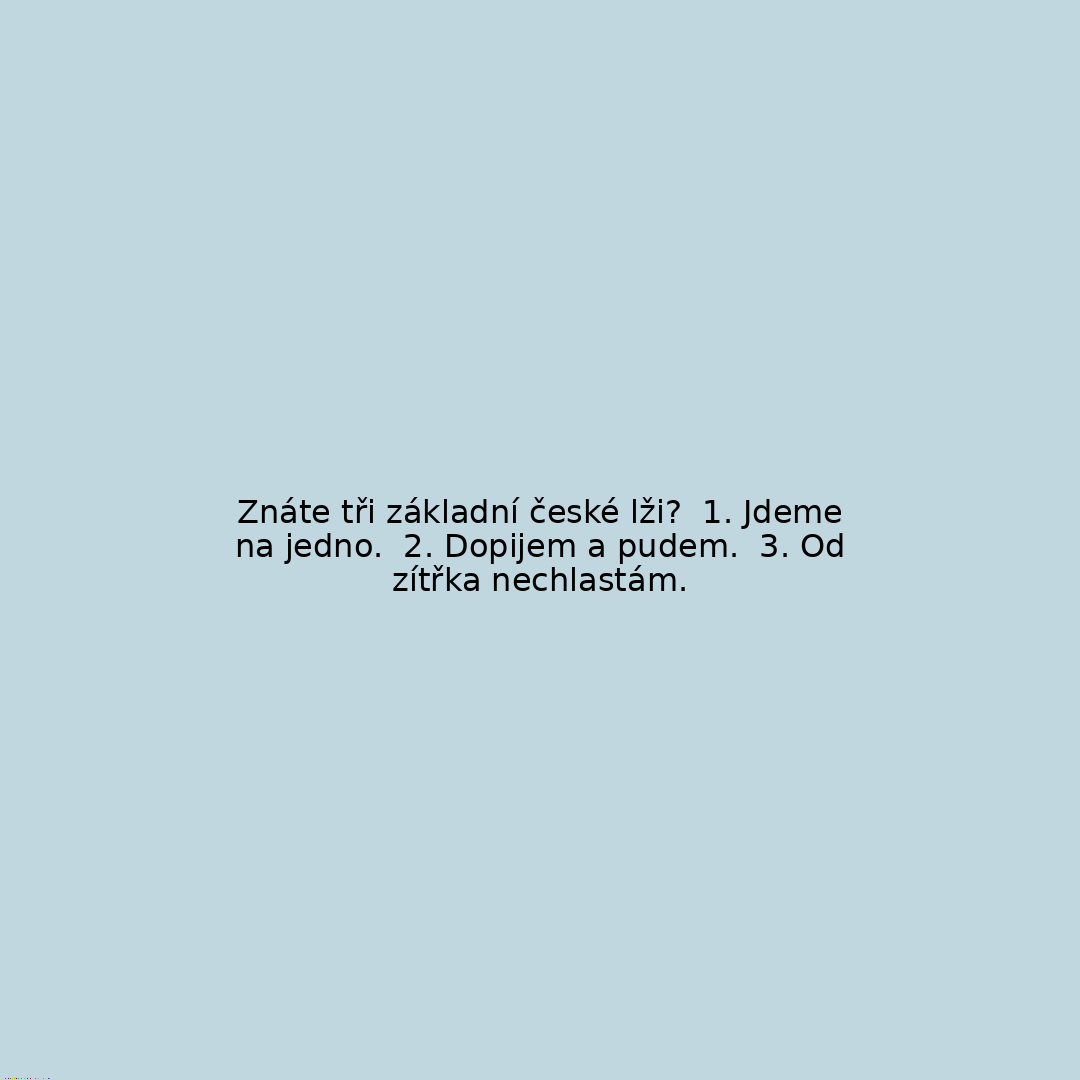 Znáte tři základní české lži? 1. Jdeme na jedno. 2. Dopijem a pudem. 3. Od zítřka nechlastám.
