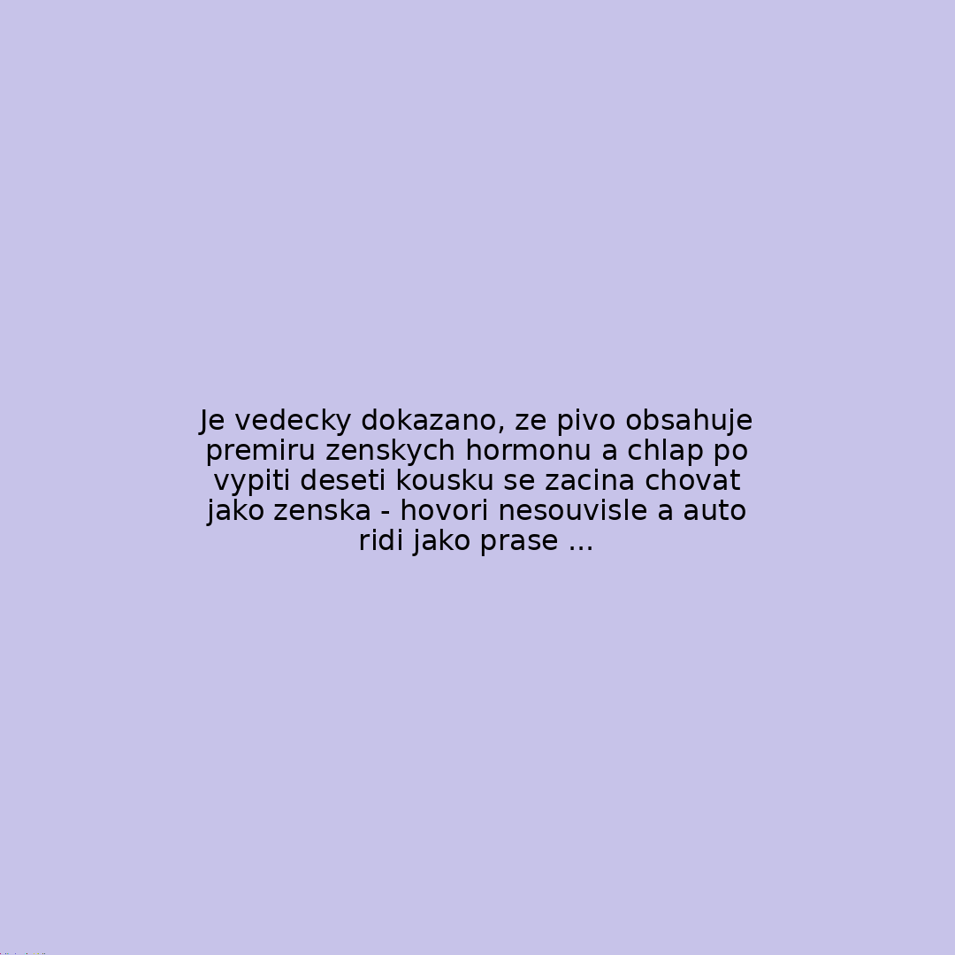 Je vedecky dokazano, ze pivo obsahuje premiru zenskych hormonu a chlap po vypiti deseti kousku se zacina chovat jako zenska - hovori nesouvisle a auto ridi jako prase ...