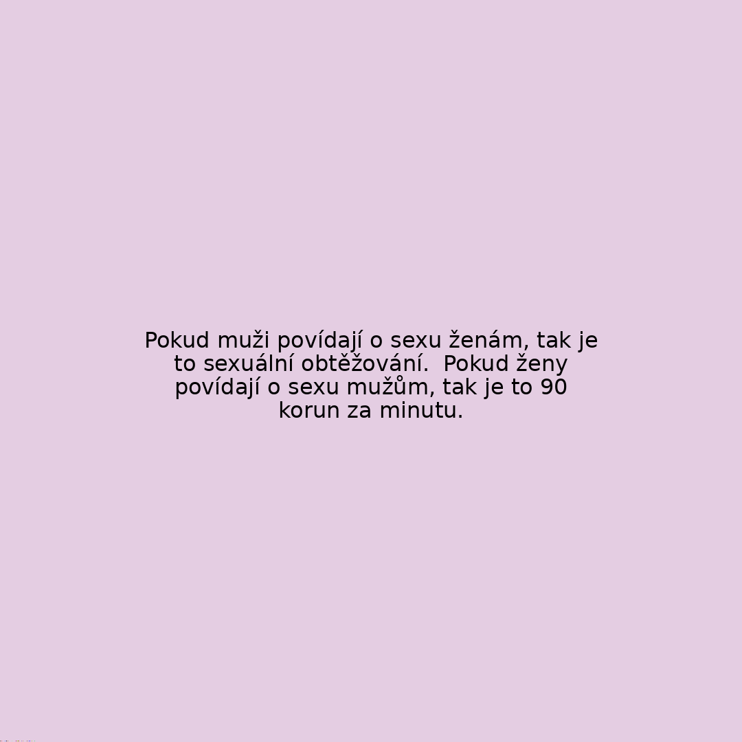 Pokud muži povídají o sexu ženám, tak je to sexuální obtěžování. Pokud ženy povídají o sexu mužům, tak je to 90 korun za minutu.