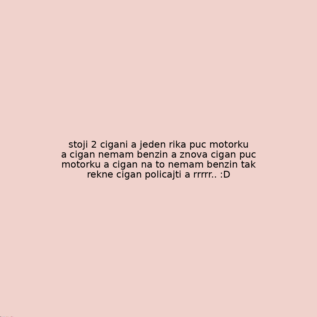 stoji 2 cigani a jeden rika puc motorku a cigan nemam benzin a znova cigan puc motorku a cigan na to nemam benzin tak rekne cigan policajti a rrrrr.. :D