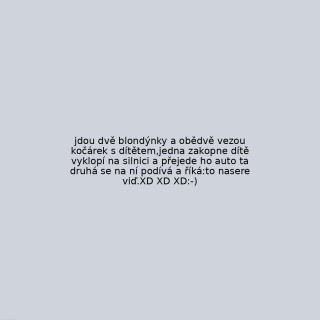 jdou dvě blondýnky a obědvě vezou kočárek s dítětem,jedna zakopne dítě vyklopí na silnici a přejede ho auto ta druhá se na ní podívá a říká:to nasere viď.XD XD XD:-)