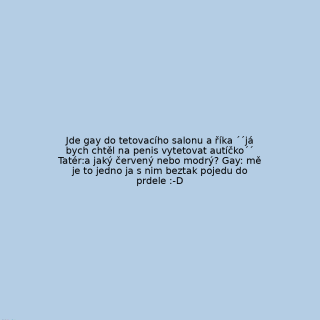 Jde gay do tetovacího salonu a říka ´´já bych chtěl na penis vytetovat autíčko´´ Tatér:a jaký červený nebo modrý? Gay: mě je to jedno ja s nim beztak pojedu do prdele :-D