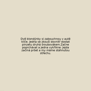 Dvě blondýnky si zabouchnou v autě klíče. Jedna se zkouší dovnitř dostat pinzetu druhá šroubovákem.Začne poprchávat a jedna vykřikne: Jejda začíná pršet a my máme stáhnutou střechu.