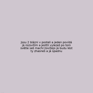 Jsou 2 blázni v posteli a jeden povídá já rozsvítím a jesttli vylezeš po tom světle seš machr,tovížejo já budu lést ty zhasneš a já spadnu