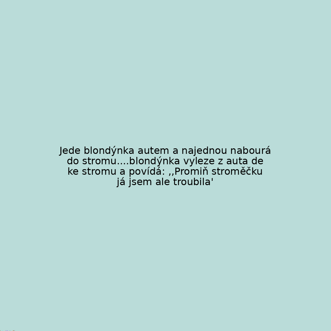 Jede blondýnka autem a najednou nabourá do stromu....blondýnka vyleze z auta de ke stromu a povídá: ,,Promiň stroměčku já jsem ale troubila'