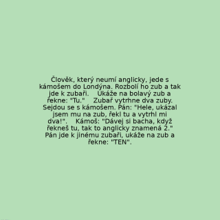 Člověk, který neumí anglicky, jede s kámošem do Londýna. Rozbolí ho zub a tak jde k zubaři.