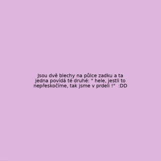 Jsou dvě blechy na půlce zadku a ta jedna povídá té druhé: " hele, jestli to nepřeskočíme, tak jsme v prdeli !" :DD