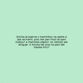Anicka je poprve s maminkou na opere a pta se:mami, proc ten pan hrozi te pani hulkou? a maminka odpovi: on nehrozi ale diriguje. A Anicka tak proc ta pani tak hlasite krici?