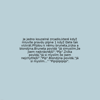 Je jedno kouzelné zrcadlo,které když mluvíte pravdu pípne 1 když lžete tak víckrát.Přijdou k němu bruneta,zrzka a blondýna.Bruneta povídá "Já simyslím,že jsem nejkrásnější"."Píp".Zrzka povídá,"Já si myslím že jsem nejchytřejší"."Píp".Blondýna povídá,"Já si myslím..." "Pípípípípípí".