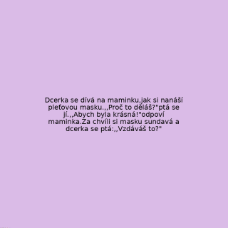 Dcerka se dívá na maminku,jak si nanáší pleťovou masku.,,Proč to děláš?"ptá se jí.,,Abych byla krásná!"odpoví maminka.Za chvíli si masku sundavá a dcerka se ptá:,,Vzdáváš to?"