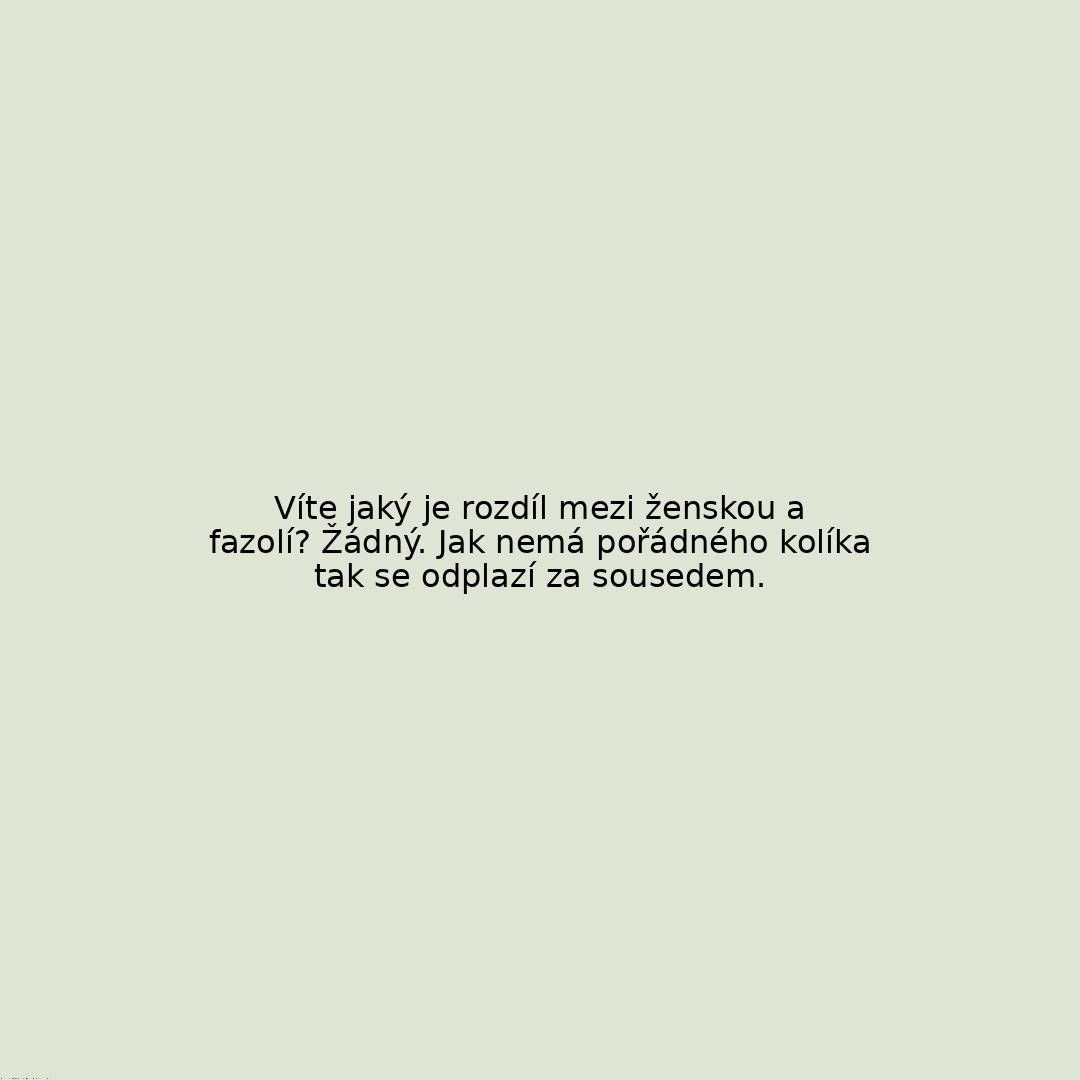 Víte jaký je rozdíl mezi ženskou a fazolí? Žádný. Jak nemá pořádného kolíka tak se odplazí za sousedem.