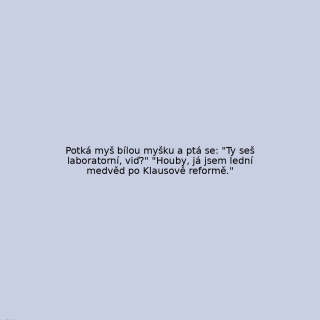 Potká myš bílou myšku a ptá se: "Ty seš laboratorní, viď?" "Houby, já jsem lední medvěd po Klausově reformě."