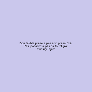 Dou takhle prase a pes a to prase řiká: "Psí počasí!" a pes na to: "A jak svinsky leje!"