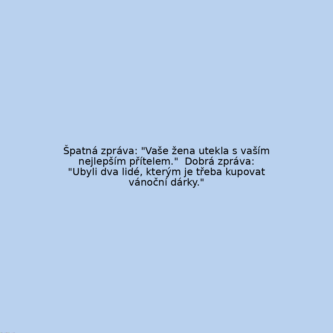 Špatná zpráva: "Vaše žena utekla s vaším nejlepším přítelem." Dobrá zpráva: "Ubyli dva lidé, kterým je třeba kupovat vánoční dárky."