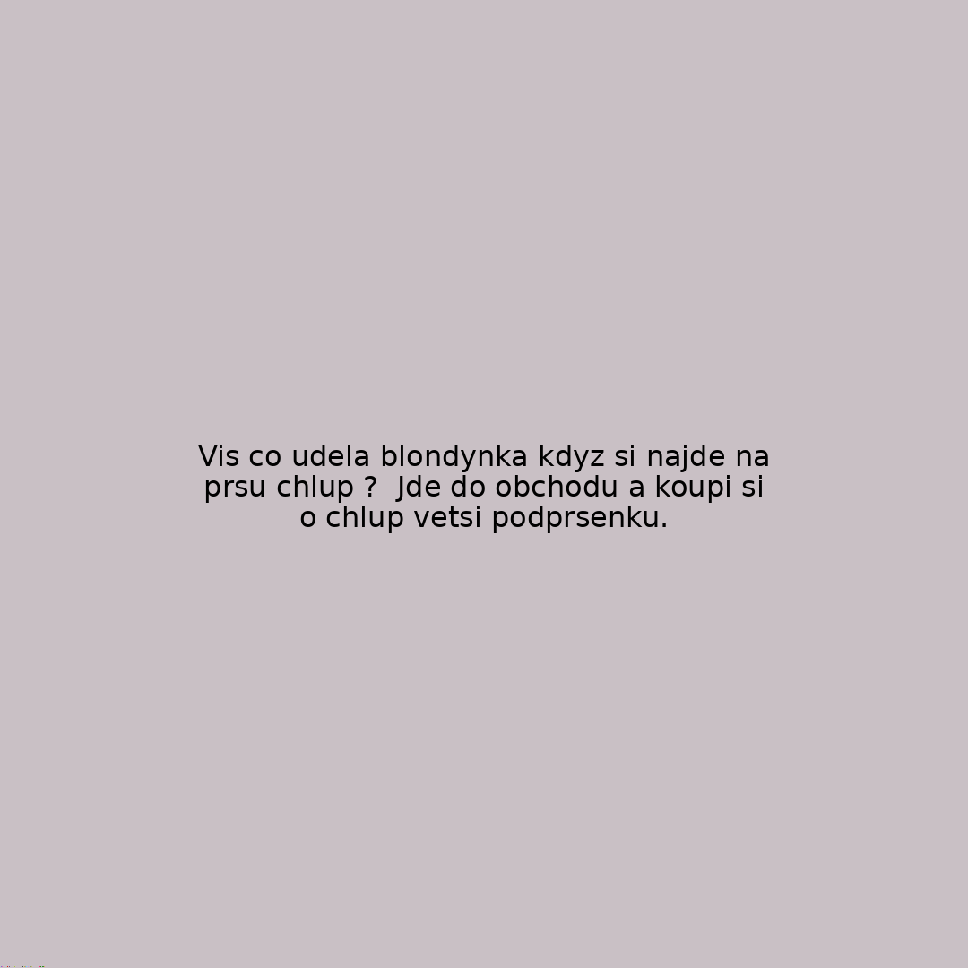 Vis co udela blondynka kdyz si najde na prsu chlup ? Jde do obchodu a koupi si o chlup vetsi podprsenku.