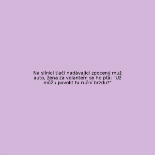 Na silnici tlačí nadávající zpocený muž auto, žena za volantem se ho ptá: "Už můžu povolit tu ruční brzdu?"