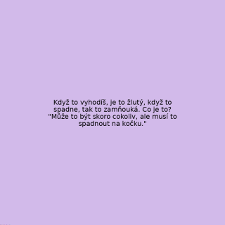 Když to vyhodíš, je to žlutý, když to spadne, tak to zamňouká. Co je to? "Může to být skoro cokoliv, ale musí to spadnout na kočku."