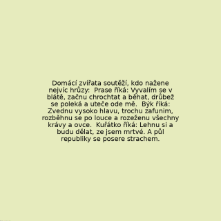 Prase říká: Vyvalím se v blátě, začnu chrochtat a běhat, drůbež se poleká a uteče ode mě.
